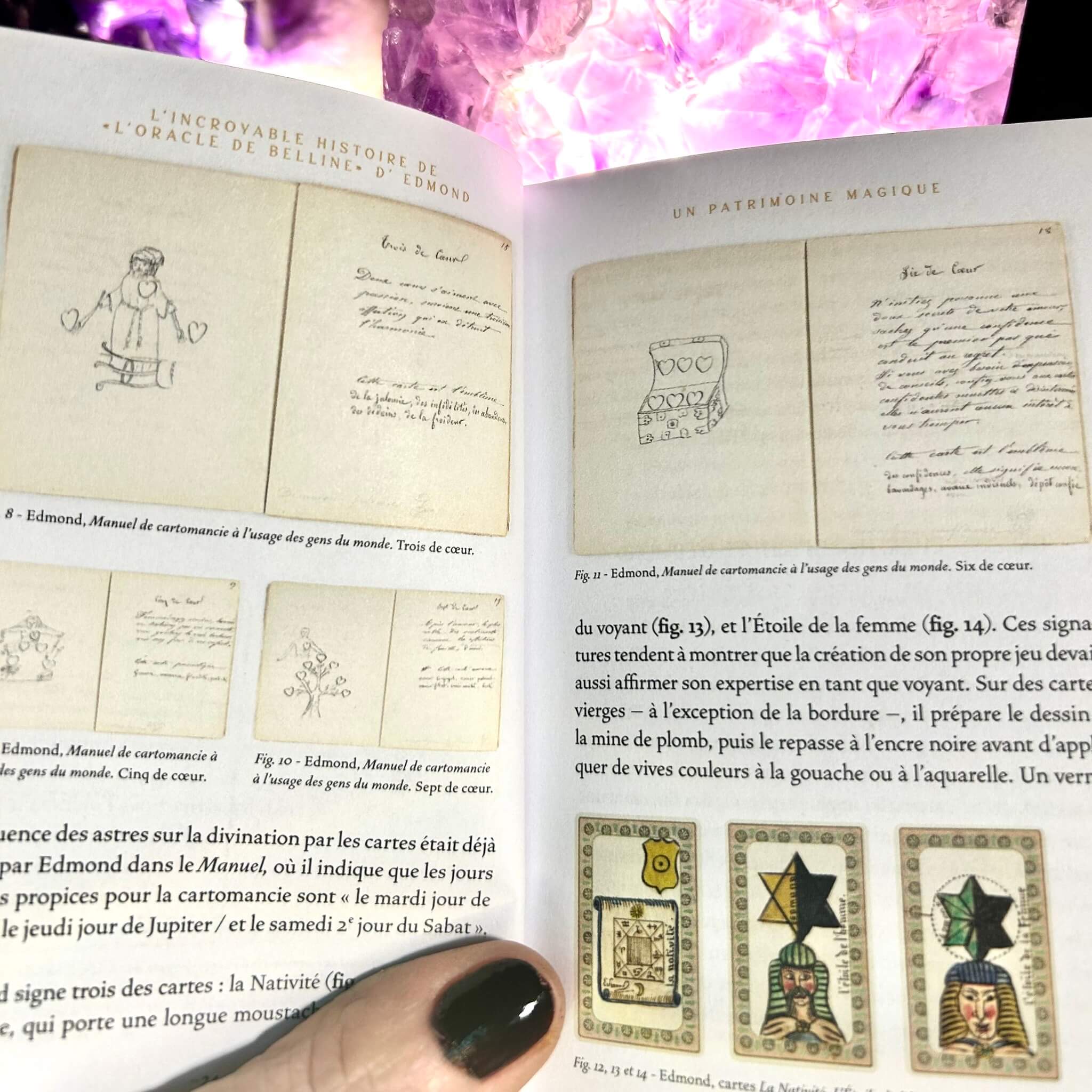 Redécouvertes par Belline et conservées au Mucem, les 52 cartes authentiques du mage Edmond sont pour la première fois entièrement décryptées par Maud Kristen, qui, dans le livret d’accompagnement transmet une explication précise de la symbolique de chaque carte, ainsi qu’une interprétation générale, sur les plans sentimental et professionnel, fruit d’années de recherches et d’expérimentations :